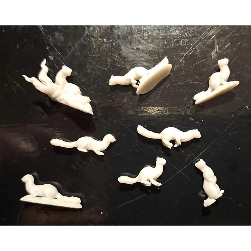 Set de 16 Belettes / Fouines / Martres / Visons imprimés en résine haute qualité, finement détaillés et qualitatifs, vendus non peints, à préparer et coller.