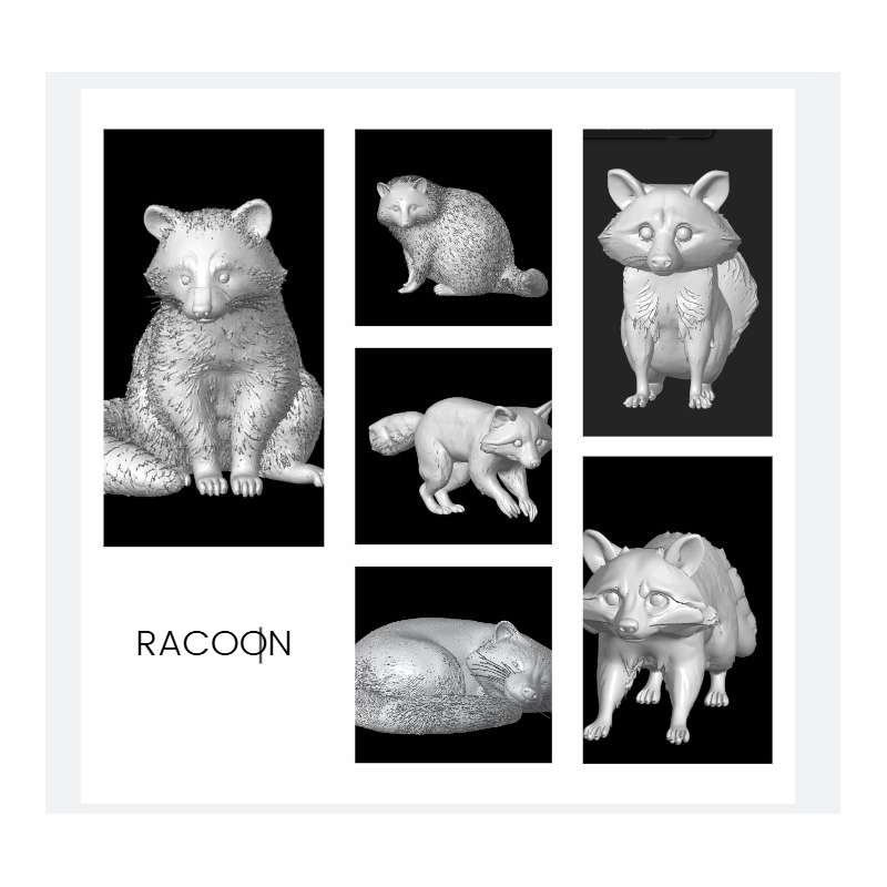 Set de 10 Ratons Laveurs imprimés en résine haute qualité, finement détaillés et qualitatifs, vendus non peints, à préparer et coller.