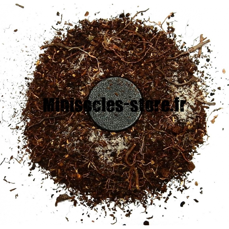 Flocage Sol Forestier (environ 100mL), mélange maison (feuilles hachées finement, racines naturelles, terre, sable...) idéal pour représenter les environnements forestiers, la litière au sol, l'humus... pour les socles de vos figurines, vos décors et vos dioramas.