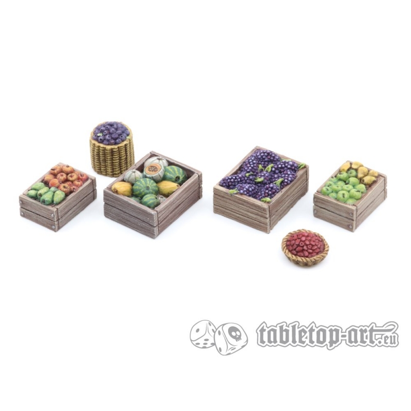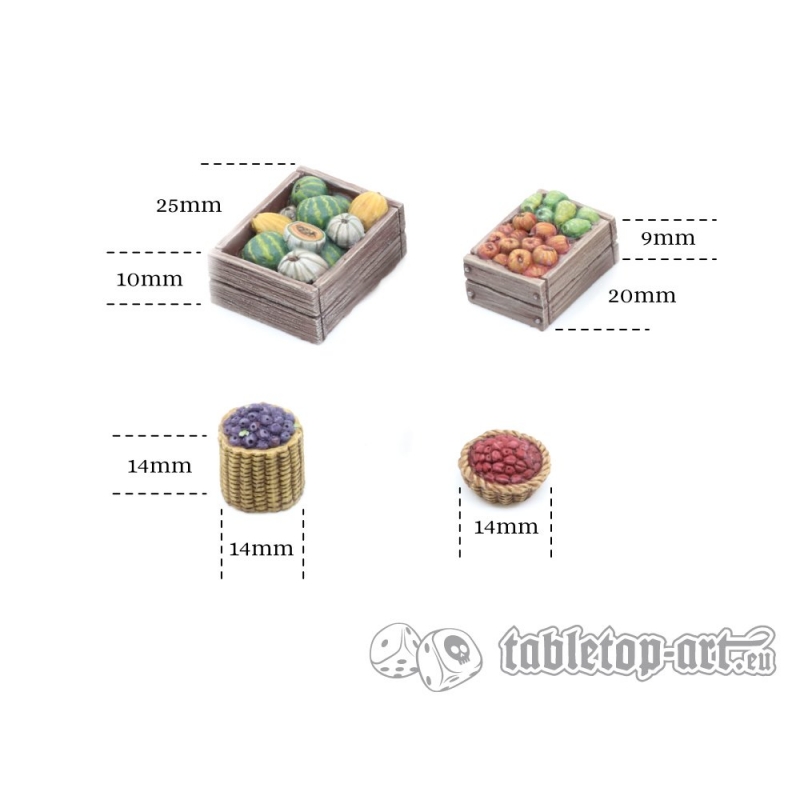 Set de 6 décors de plusieurs dimensions. Accessoires en résine, vendus non peints. Adapté aux figurines et dioramas à l'échelle 28-32mm.