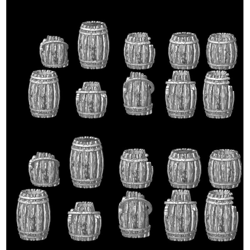 Set de 20 Tonneaux imprimés en résine haute qualité, finement détaillés et qualitatifs, vendus non peints, à préparer et coller.