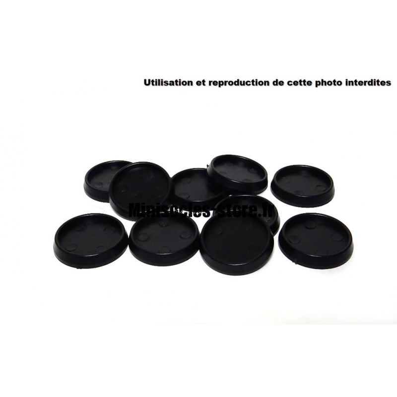 Socles ronds 25 mm biseautés et creusés PLASTIQUE NOIR (x10) V2